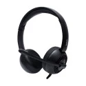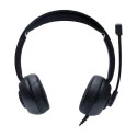 Microfone omnidirecional, haste ajustável e fones acolchoados para maior conforto.