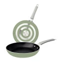 Aprimore a sua experiência na cozinha com o conjunto de frigideiras Tramontina em alumínio, apresentando revestimento interno em Starflon Premium e exterior siliconado verde, composto por 2 peças!